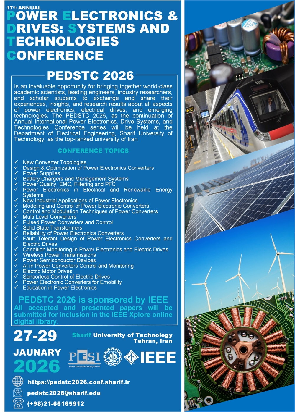 2026-01-29 111 DaysPEDSTC 2026 | The 17th Annual Power Electronics & Drives: Systems and Technologies Conference – Organized by Sharif University of Technology, Tehran, Iran.